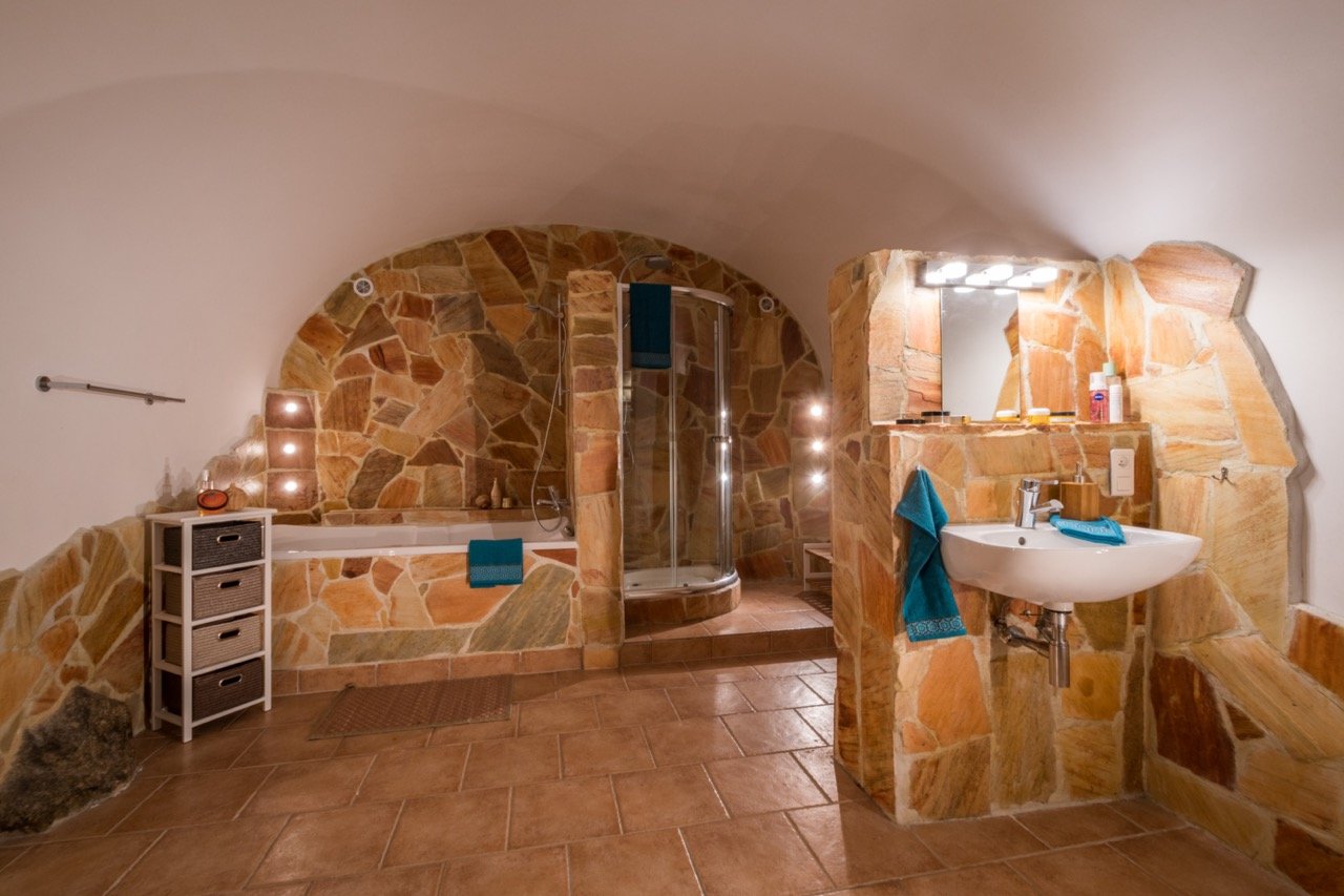 L'appartement dispose d'une salle de bain avec douche, d'une baignoire séparée et d'un WC intégré. L'appartement est fraîchement rénové et meublé récemment. Elle dispose d'une télévision à écran plat.
